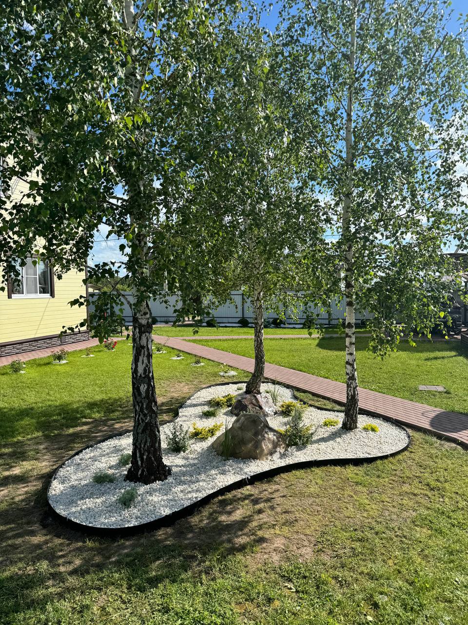 Мы часто используем для бордюров песчаник, известняк или гранит. Это достаточно прочные и красивые камни, которые хорошо сочетаются с деревом и другими материалами. А еще, нам нравится использовать речную гальку для создания небольших акцентов и декоративных элементов.