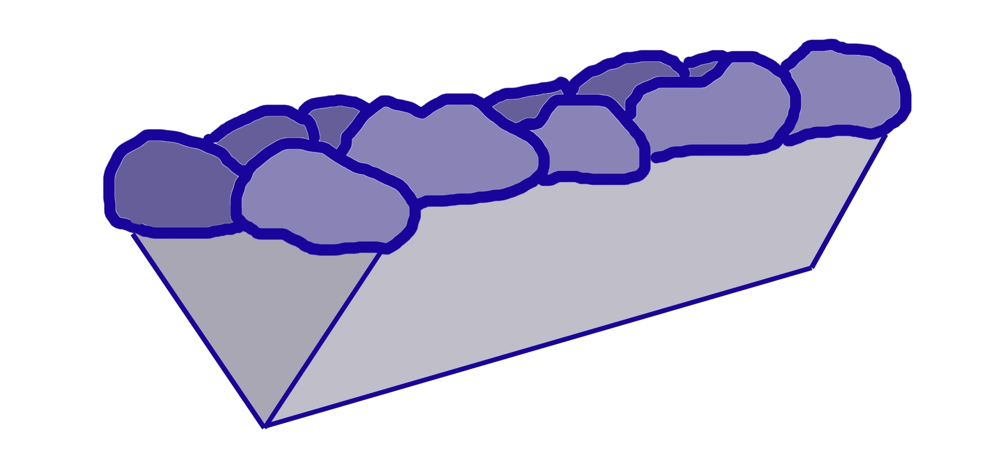Теперь, когда все готово, можно приступать к укладке камня. Это самый творческий и увлекательный этап. Мы обычно начинаем с самых крупных камней, располагая их по краям бордюра. Затем заполняем пространство между ними камнями меньшего размера.