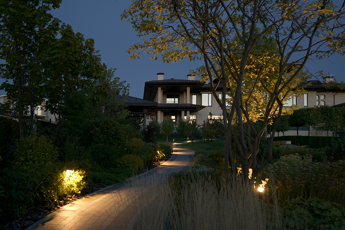 Точечные светильники мы установили возле крупных камней, чтобы подчеркнуть их форму и текстуру. Светодиодные ленты мы использовали для подсветки дорожек и растений. Фонарики на солнечных батареях мы разместили по периметру сада, чтобы создать мягкое и рассеянное освещение.