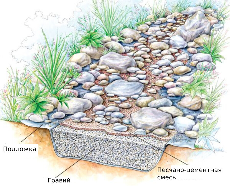 | Сухой ручей своими руками фото | Как сделать сухой ручей на даче | Растения для сухого ручья | Ландшафтный дизайн с сухим ручьем | Сухой ручей дренаж |