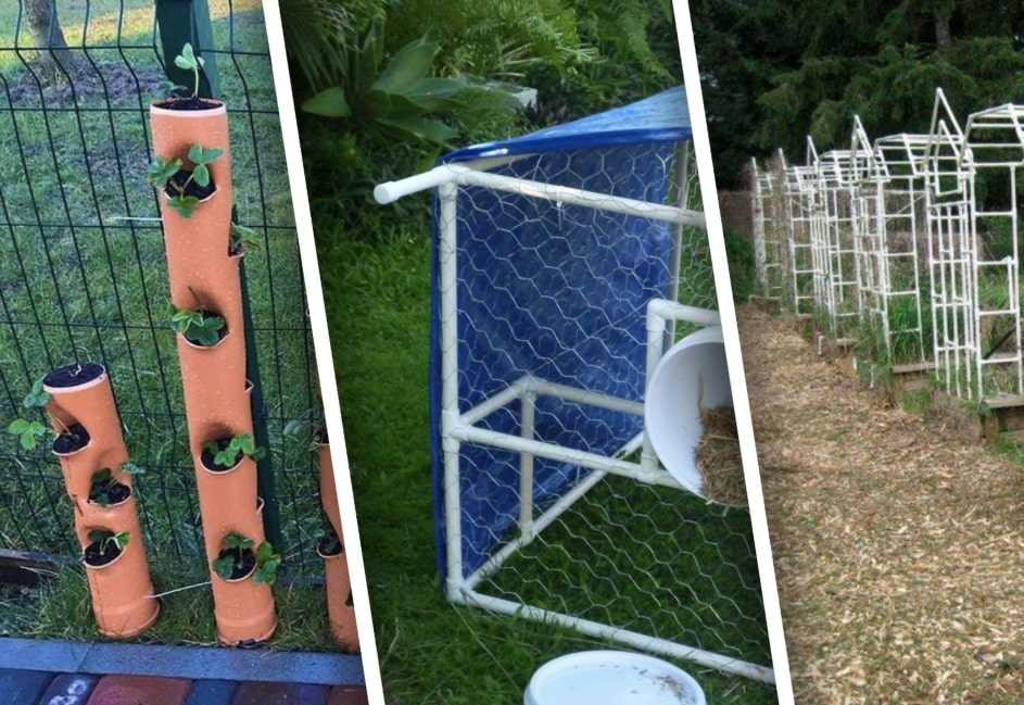 - Огород из труб ПВХ, покрашенных в разные цвета: Добавьте красок и веселья в ваш сад.