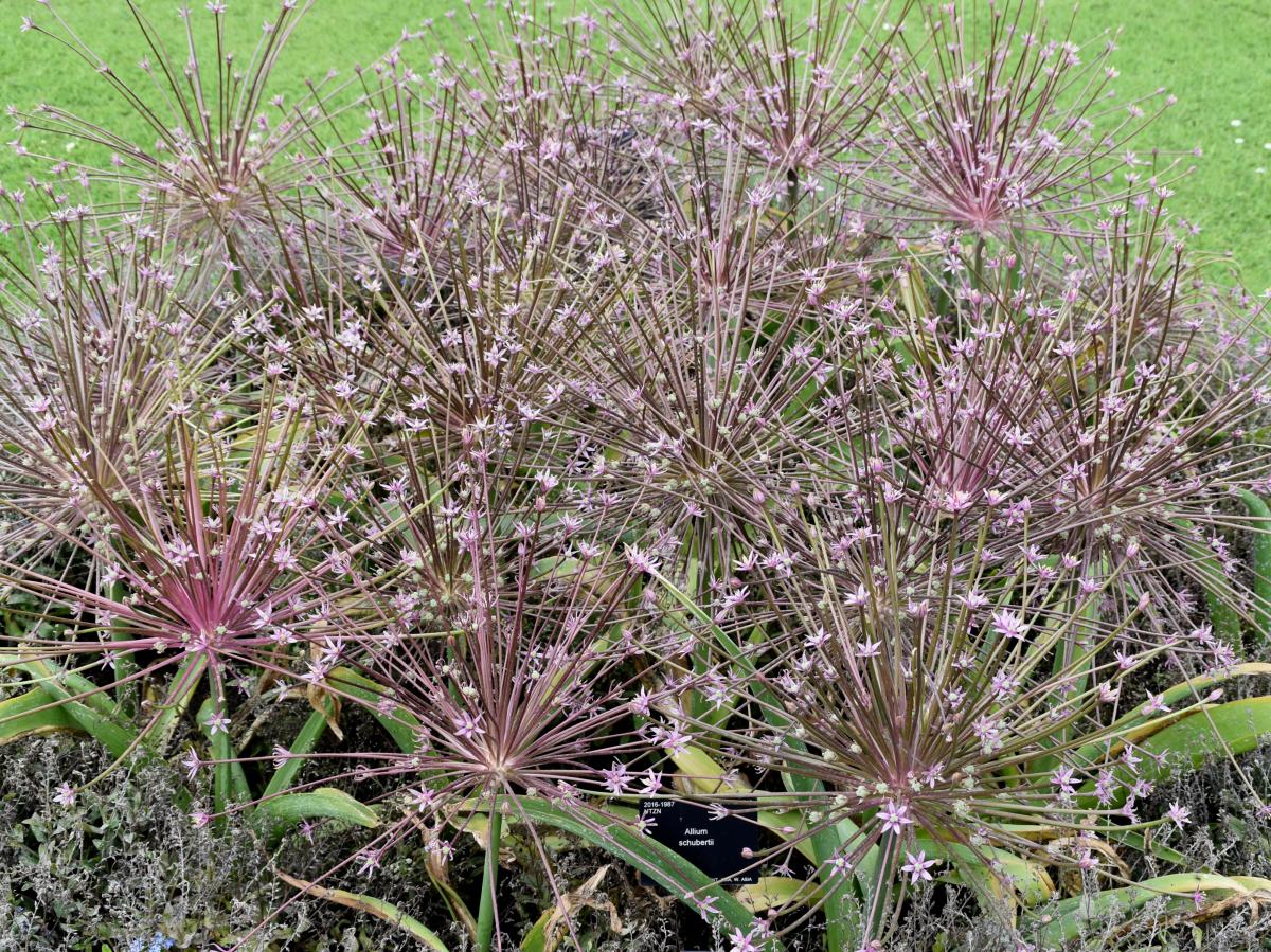 - Аллиум Шуберта (Allium schubertii) – имеет необычные, зонтиковидные соцветия, состоящие из цветков разной длины.