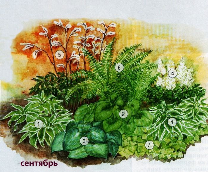 Мы советуем обратить внимание на контраст форм и текстур листьев. Например‚ папоротники с ажурными листьями хорошо сочетаются с хостами с крупными‚ округлыми листьями. А папоротники с кожистыми листьями можно сочетать с астильбами с мелкими‚ перистыми листьями.