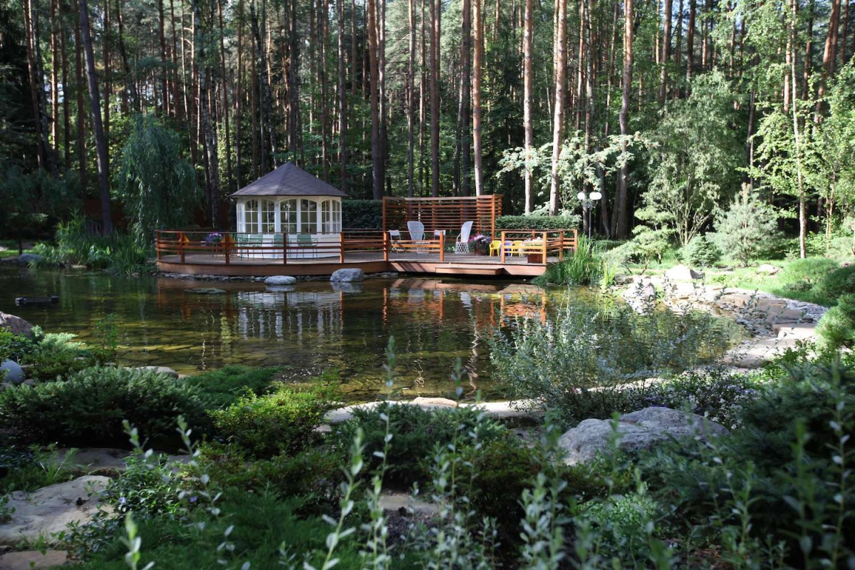 - Ручей с мостиком: Перекиньте через ручей небольшой мостик, чтобы создать дополнительный элемент декора․